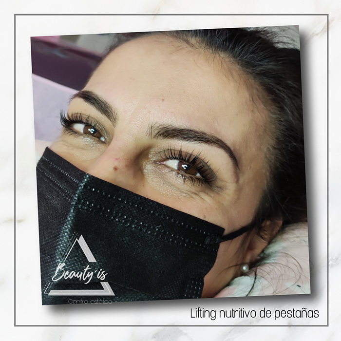 Está técnica eleva la curvatura de las pestañas, alargándolas desde la raíz y potenciando la mirada sin utilizar pelo sintético.